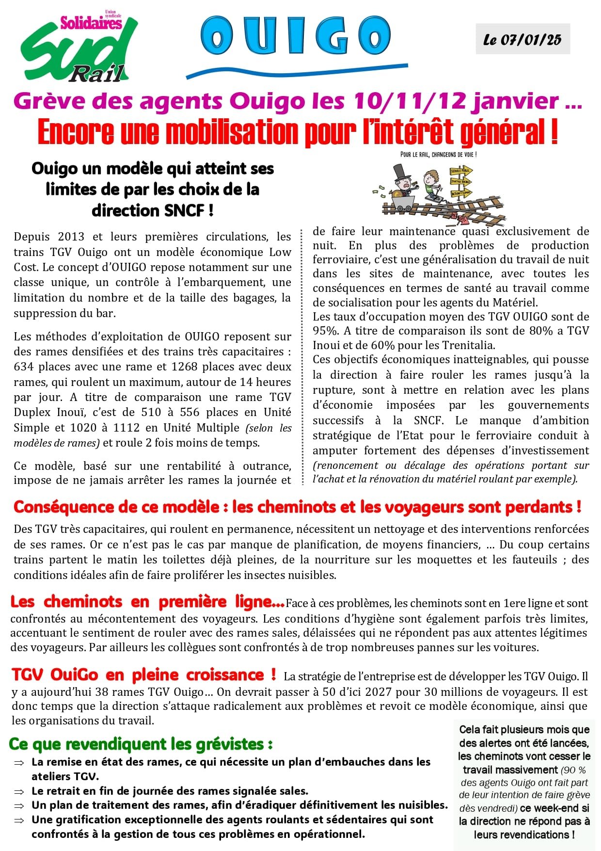 Ce modèle, basé sur une rentabilité à outrance, impose de ne jamais arrêter les rames la journée et de faire leur maintenance quasi exclusivement de nuit. En plus des problèmes de production ferroviaire, c’est une généralisation du travail de nuit dans les sites de maintenance, avec toutes les conséquences en termes de santé au travail comme de socialisation pour les agents du Matériel.