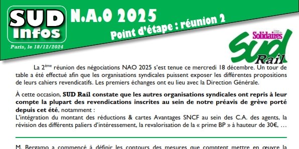 Vous trouverez un point d'étape syndical dans le cadre des NAO Salaires 2025 dans la restauration ferroviaire.