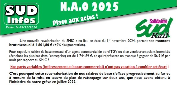 Voici le cahier revendicatif que défendra SUD-Rail lors des Négociations Annuelles Obligatoires 2025 dans la restauration ferroviaire / Newrest Wagons-Lits.
