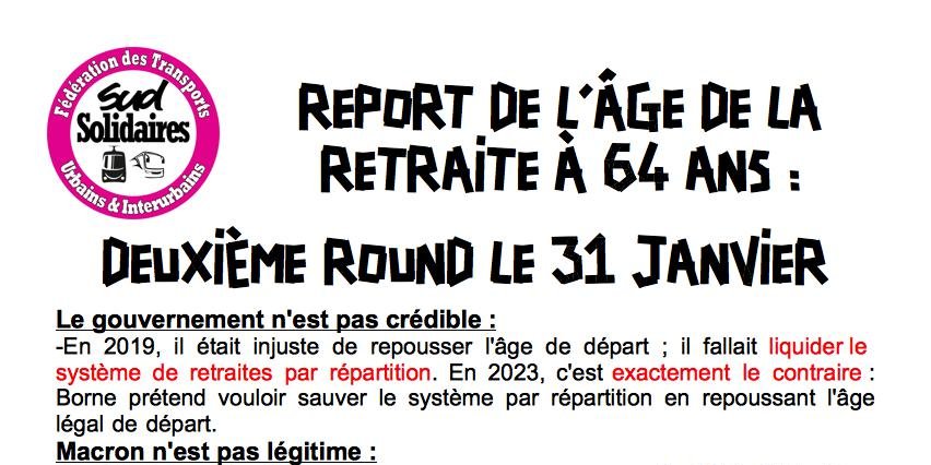 Après l'immense succès de la mobilisation du 19 janvier contre la réforme des retraites, mettons-nous dès maintenant en ordre de bataille pour augmenter la pression dès le 31 janvier. Le gouvernement est fébrile, nous pouvons gagner !