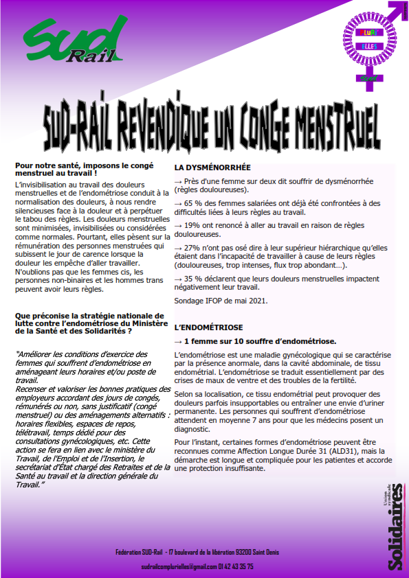 L’invisibilisation au travail des douleurs menstruelles et de l’endométriose conduit à la normalisation des douleurs, à nous rendre silencieuses face à la douleur et à perpétuer le tabou des règles. Les douleurs menstruelles sont minimisées, invisibilisées ou considérées comme normales. Pourtant, elles pèsent sur la rémunération des personnes menstruées qui subissent le jour de carence lorsque la douleur les empêche d’aller travailler. N'oublions pas que les femmes cis, les personnes non-binaires et les hommes trans peuvent avoir leurs règles.