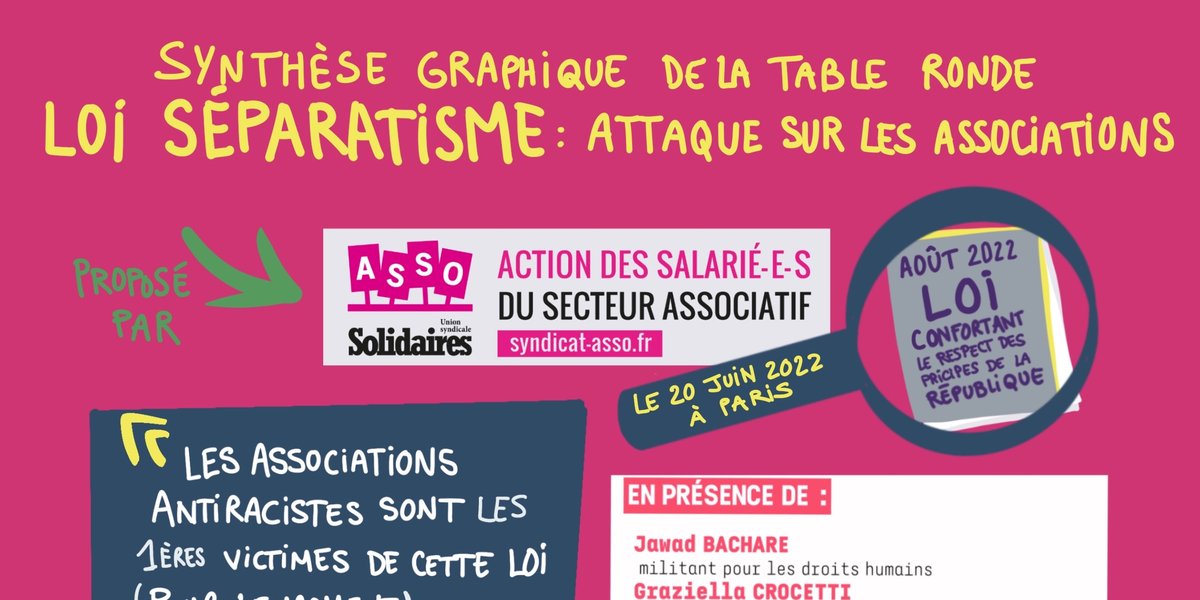 A ASSO-Solidaires, on milite pour faire face à la précarité des contrats évidemment mais aussi contre la marchandisation des associations. Début 2021, on a créé un groupe de travail sur l’antiracisme, notamment suite aux débats autour de la loi dite “séparatisme” car on sentait bien qu'il y avait une menace là sur les travailleur-ses eux mêmes. Très rapidement, on a écrit un communiqué sur cette loi. En tant que syndicat, il est important d’échanger sur les conséquences de cette loi, d’où cette table ronde. Nous avions d’abord échangé avec une avocate spécialisée avec qui nous allons d’ailleurs organiser une formation portant sur les discriminations religieuses, en particulier l’islamophobie au travail.