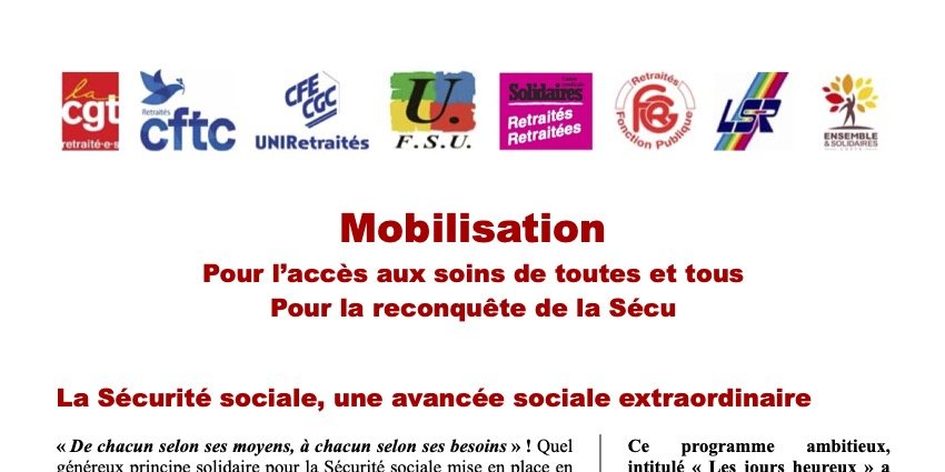 80 ans après sa création, la Sécurité sociale intégrale est plus que jamais nécessaire pour couvrir totalement tous les risques et aléas de la vie à la mort, et notamment la santé, et pour retrouver la solidarité, l’universalité et la démocratie. Nos 9 organisations appellent à la mobilisation le 20 mars pour la reconquête de la Sécu :