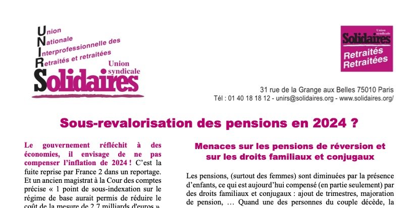 Tract UNIRS : sous-revalorisation des pensions en 2024 = tout·es dans la rue le 26 mars !