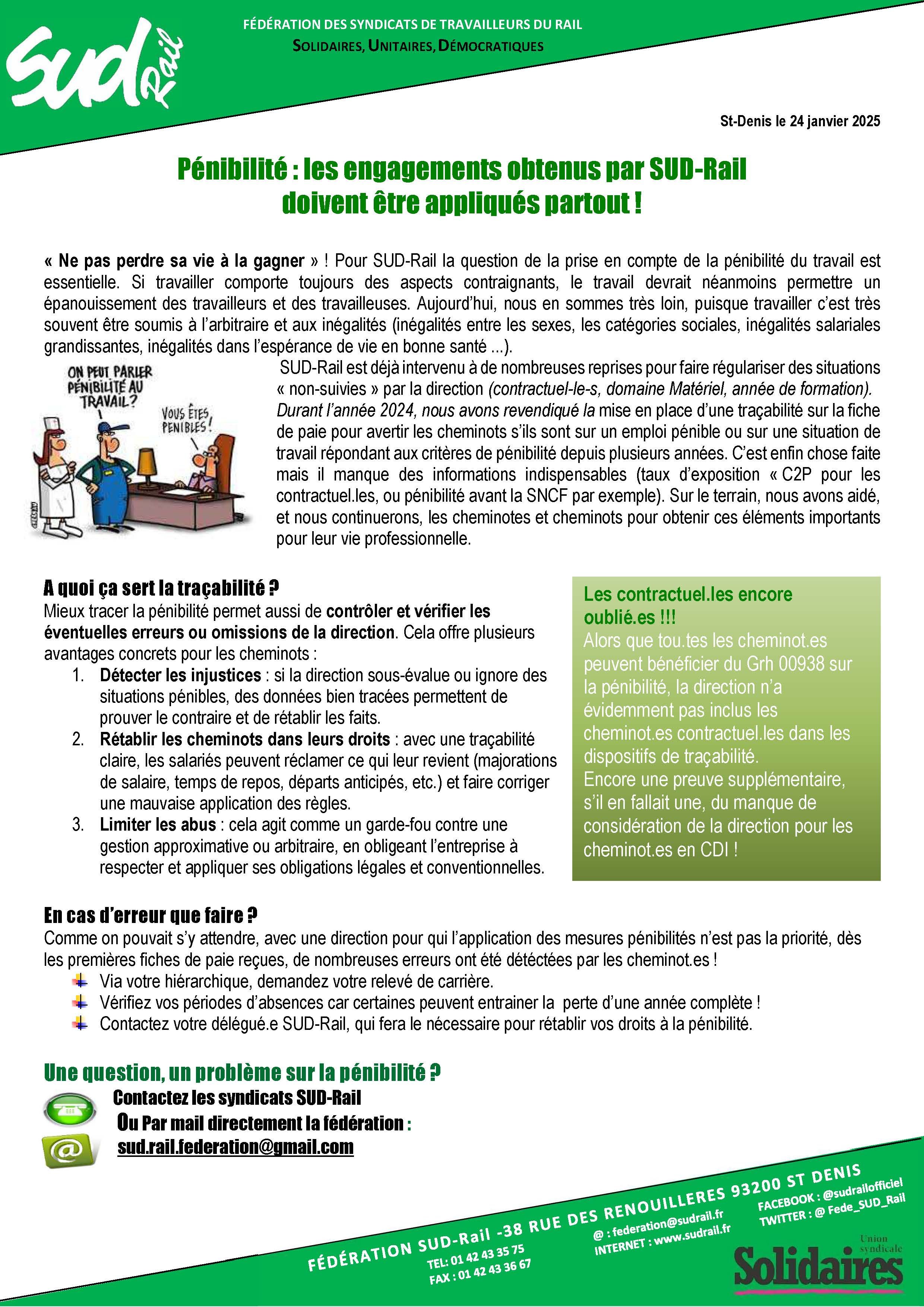 « Ne pas perdre sa vie à la gagner » ! Pour SUD-Rail la question de la prise en compte de la pénibilité du travail est essentielle.