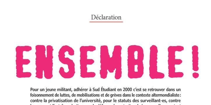 Pour un jeune militant, adhérer à Sud Étudiant en 2000 c’est se retrouver dans un foisonnement de luttes, de mobilisations et de grèves dans le contexte altermondialiste: contre la privatisation de l’université, pour le statuts des surveillant·es, contre la guerre et l’extrême droite, pour la défense des retraites, le Larzac… Il y a surtout l’apprentissage du rapport de force, la défense quotidienne des (futur·es) travailleuses et des travailleurs en l’articulant avec l’élaboration d’une transformation sociale. Sans oublier le développement de l’interprofessionnelle de proximité avec les UD et les UL.