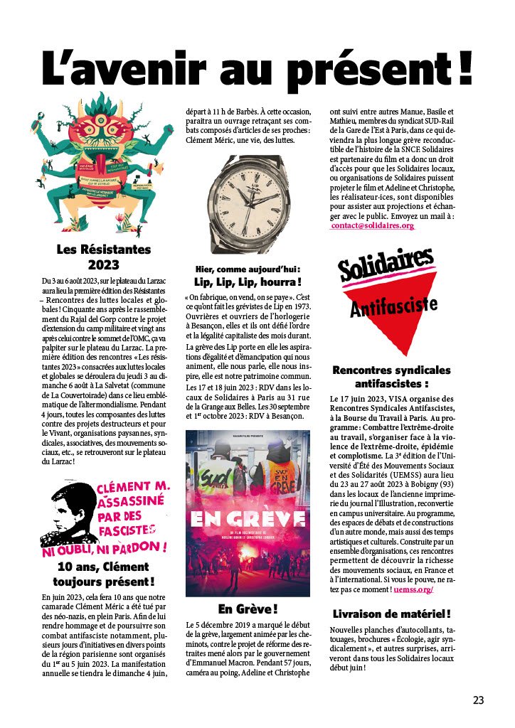 Les 17 et 18 juin 2023 : RDV dans les locaux de Solidaires à Paris au 31 rue de la Grange aux Belles. Les 30 septembre et 1er octobre 2023 : RDV à Besançon.