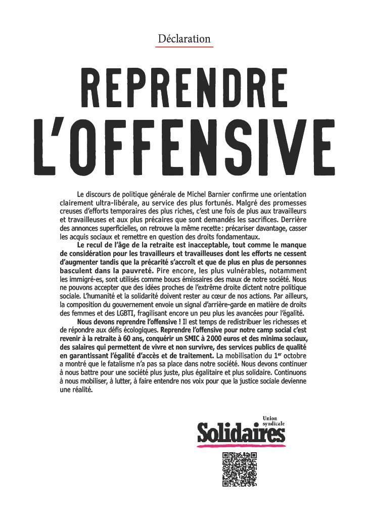 La mobilisation du 1er octobre a montré que le fatalisme n’a pas sa place dans notre société. Nous devons continuer à nous battre pour une société plus juste, plus égalitaire et plus solidaire. Continuons à nous mobiliser, à lutter, à faire entendre nos voix pour que la justice sociale devienne une réalité.