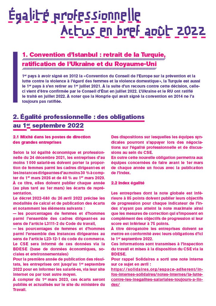 2- Egalité professionnelle : des obligations au 1er septembre 2022