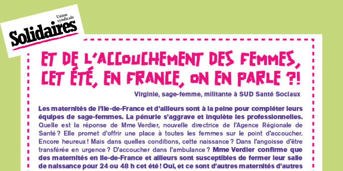 Et de l’accouchement des femmes, cet été, en France, on en parle ?!