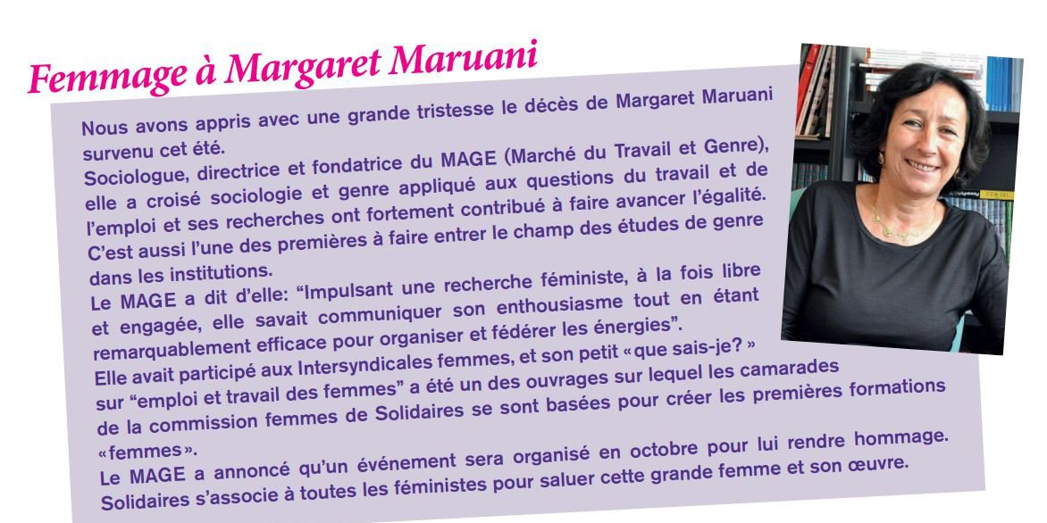 Nous avons appris avec une grande tristesse le décès de Margaret Maruani survenu cet été.