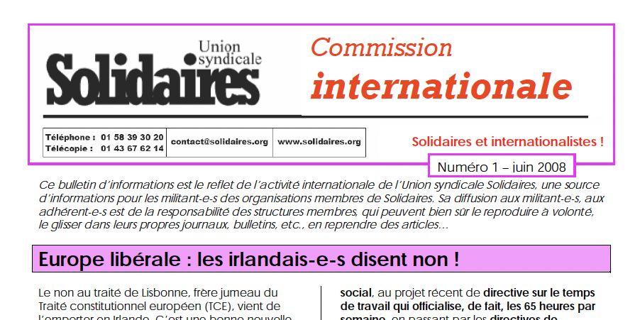 Solidaires et internationalistes ! : N° 1