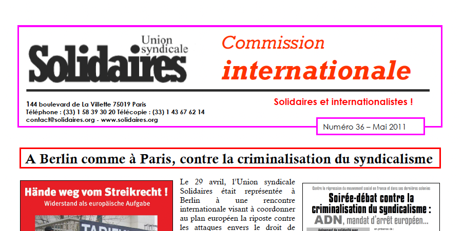 - A Berlin comme à Paris, contre la criminalisation du syndicalisme