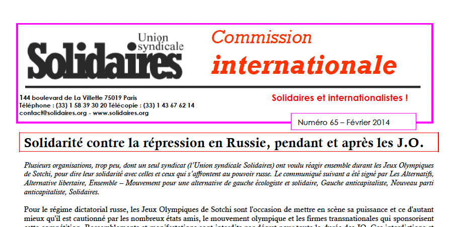 Solidaires et internationalistes ! : N° 65
